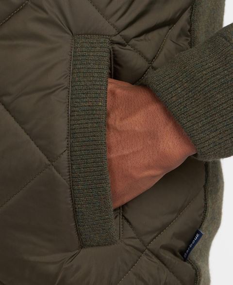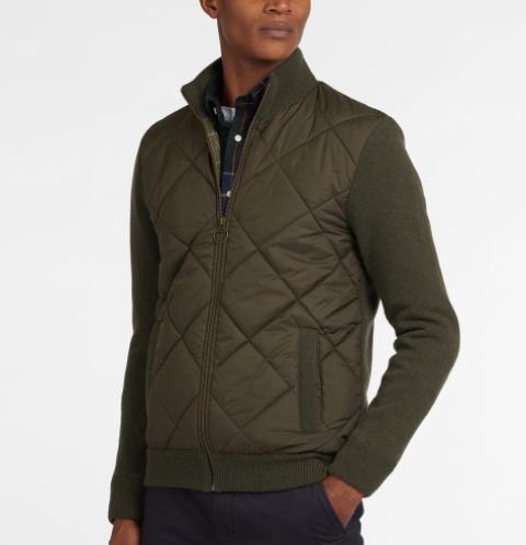Cierre de cremallera en la parte delantera . Parte delantera acolchada de nailon con rombos.Trasera y mangas de punto.