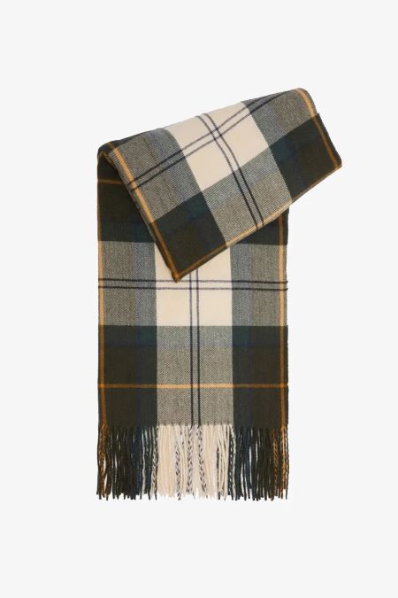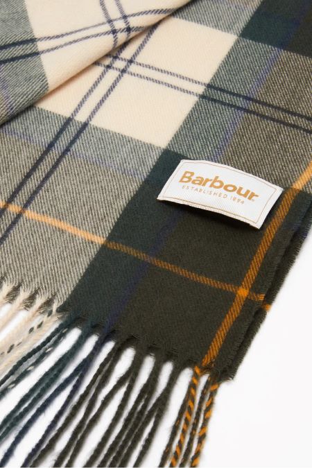 Bufanda con clásico estampado tartán Barbour confeccionada en poliéster de tacto suave. Detalle de flecos largos y finos en el dobladil