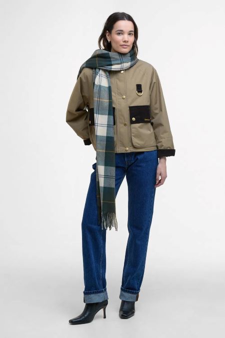 CompararBufanda Hailes Tartan en tonos verde, crudo y amarillo de Barbour mujer.