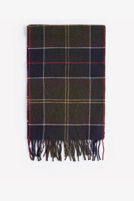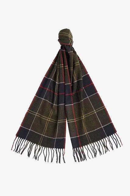 Bufanda confeccionada hilo súper suave con diseño de tartán característico de Barbour con flecos.