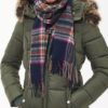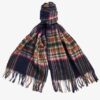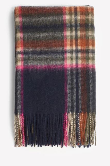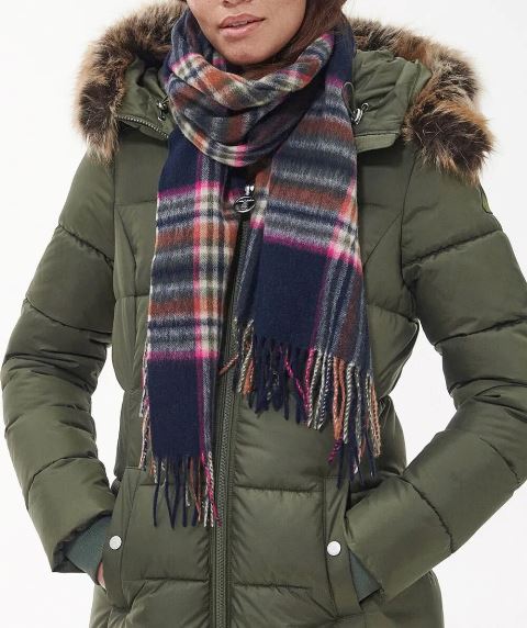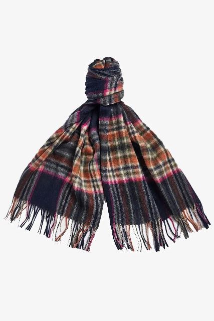 CompararBufanda Lonnen Check Wrap en tonos azul marino, rosa fucsia y naranja de Barbour mujer ,estampada a cuadros confeccionada en suave lana.