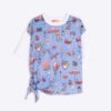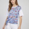 Camiseta de manga corta con delantero estampado rayas azules y motivos vintage.