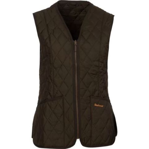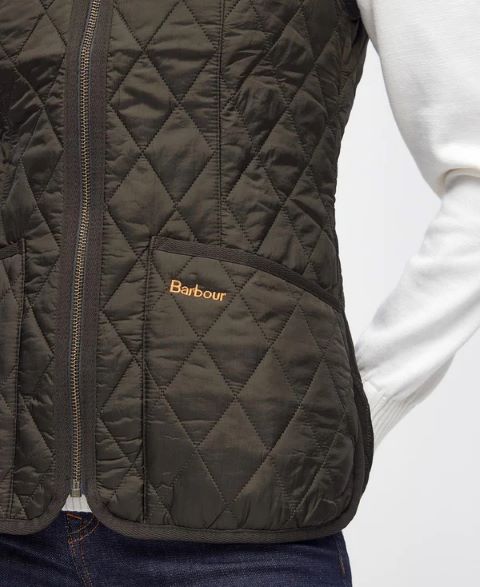 Chaleco acolchado con forro interior en suave tejido forro polar. Escote en V y bolsillos laterales exteriores. Bordado de Barbour en el bolsillo en contraste. Cierre con cremallera.