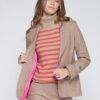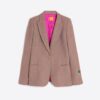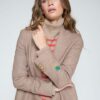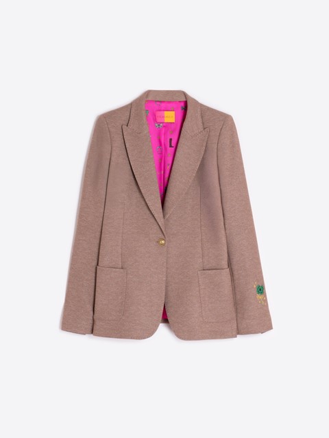 Chaqueta entallada confeccionada en punto diagonal beige, con cuello con solapa clásica y cierre frontal con botón dorado.