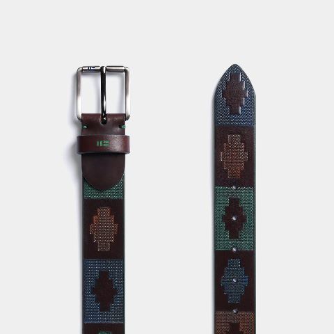 Cinturón sport elaborado en piel de vacuno, grabado y pintado a mano en color marrón.